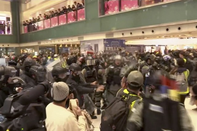 Cảnh sát Hong Kong lại đụng độ với người biểu tình. Hôm Chủ nhật 15/12, cảnh sát Hong Kong đã phải ra tay trấn áp và bắt giữ một số người biểu tình khi các nhóm quá khích tiến vào phá hoại các trung tâm mua sắm tại thành phố.