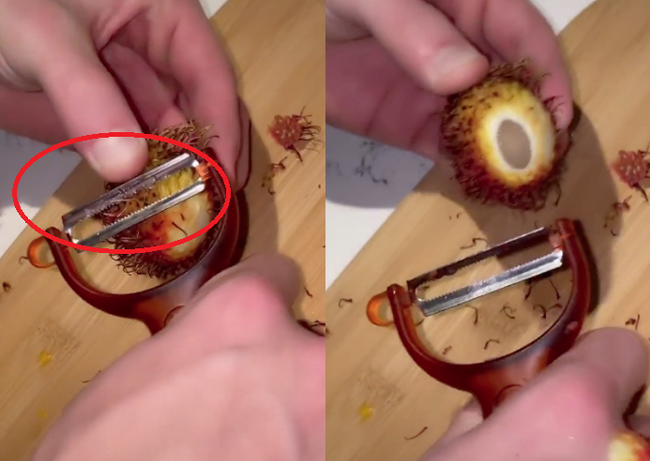 Cách đây không lâu, 1 người đàn ông Mỹ cũng khiến dân mạng không thể hiểu nổi khi dùng dao nạo chuyên gọt vỏ củ quả để cắt hết phần lông bên ngoài quả chôm chôm.