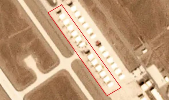 Những bức ảnh vệ tinh chụp bên trong căn cứ quân sự cho thấy, có hai hàng vật thể màu trắng bí ẩn mà các chuyên gia quân sự đến nay vẫn chưa được xác định được.
