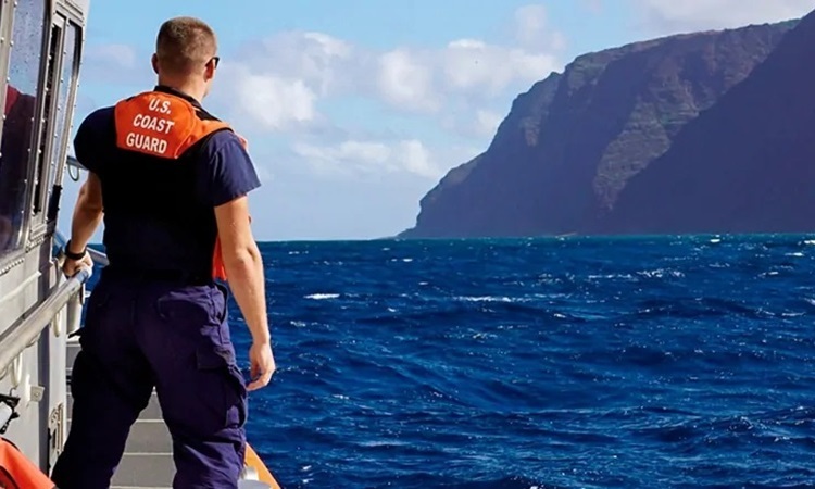 Lính tuần duyên Mỹ di chuyển tới hiện trường rơi trực thăng chở 7 người ở bờ biển Na Pali trên đảo Kauai hôm 27/12. Ảnh: CBC.