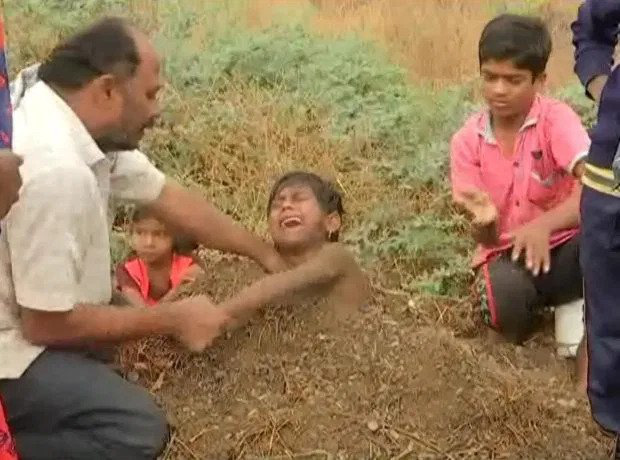 Trong một đoạn video kỳ lạ từ Ấn Độ, những đứa trẻ đang hết sức hoảng sợ vì bị chôn cả thân mình xuống đất hôi thối, chỉ chừa lại mỗi khuôn mặt ngoi lên mặt đất.