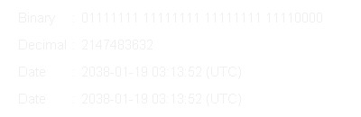 Dung lượng dữ liệu của số nguyên 32 bit có dấu chỉ đủ duy tŕ đến 3h14’7’’ ngày 19/1/2038, v́ nếu tính cụ thể ra th́ số nguyên 32 bit có dấu chỉ đếm được 231 - 1 = 2.147.483.647 giây (khoảng gần 2,15 tỷ giây) sau mốc 0 năm 1970. Thời gian tràn bộ đếm của hệ thống sẽ gây ra những hệ quả khó lường cho hệ thống máy tính.