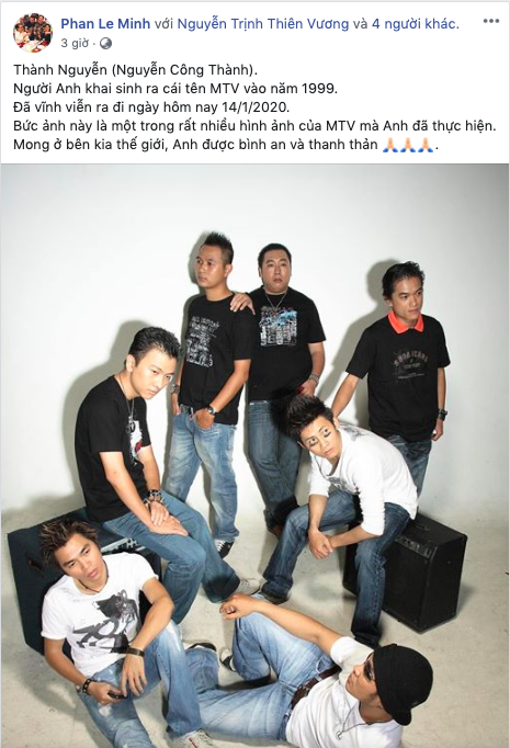 Ca sĩ Lê Minh - thành viên nhóm nhạc MTV gửi lời tiễn biệt đến anh: "Người anh khai sinh ra cái tên MTV vào năm 1999. Đã vĩnh viễn ra đi ngày hôm nay 14/1/2020.