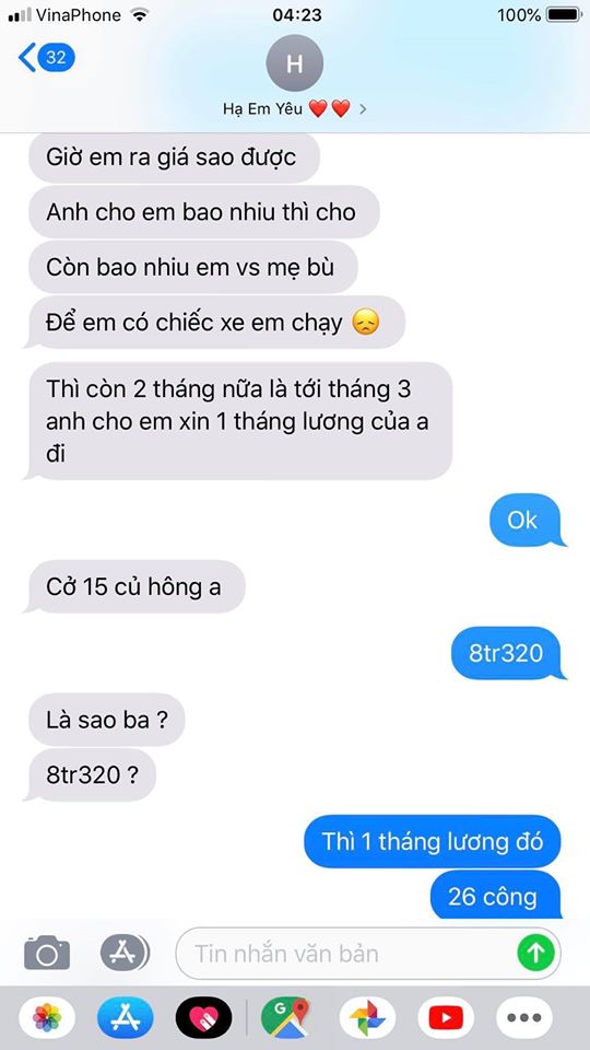 Ban đầu, cô gái ngỏ lời xin người yêu phụ tiền để mua trả góp xe, “đầu tư cho em mấy triệu”.