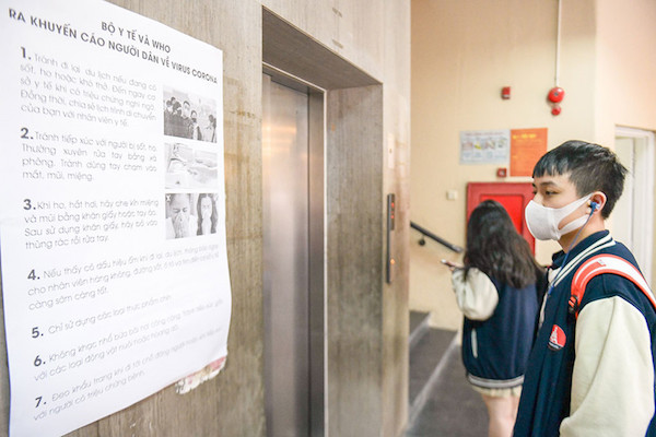 Nhiều trường học dán những khuyến cáo từ Bộ Y tế và WHO để phòng dịch viêm phổi Vũ Hán. Những lưu ý quan trọng là tránh du lịch nếu đang sốt, ho hoặc khó thở. Người có biểu hiện nghi ngờ nhiễm bệnh đến ngay cơ sở y tế để khám, chia sẻ lịch trình di chuyển với nhân viên y tế. Học sinh, giáo viên được khuyến cáo tránh tiếp xúc người bị sốt, ho; chỉ sử dụng thực phẩm chín; không khạc nhổ bừa bãi nơi công cộng; thường xuyên rửa tay bằng xà phòng; tránh dùng tay chạm mũi, mắt, miệng