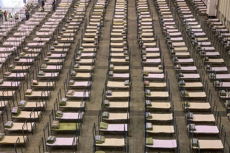 Một trung tâm triển lăm được trưng dụng đặt giường bệnh cho các bệnh nhân nhiễm virus Corona.