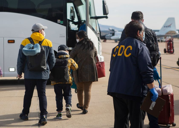 Công dân Mỹ sơ tán khỏi Vũ Hán về tới căn cứ không quân Miramar ở bang California (Mỹ) ngày 5-2 - Ảnh: US ARMY