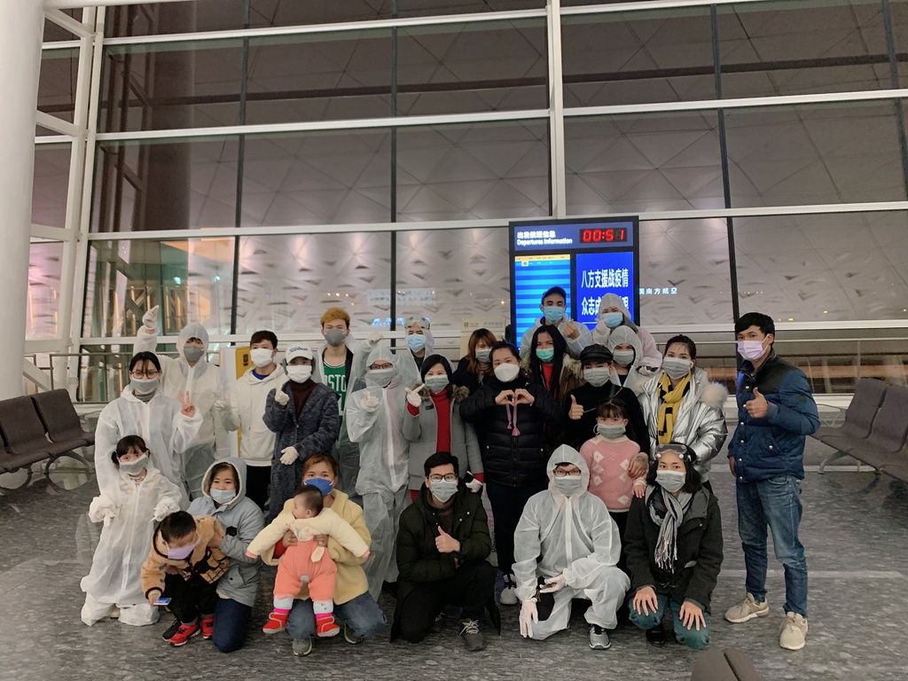 Nhóm người Việt từ tâm dịch Vũ Hán trở về. Ảnh: Việt Linh.