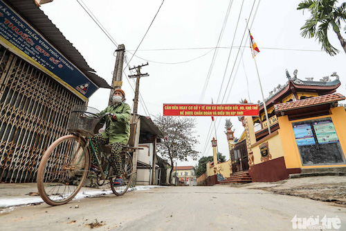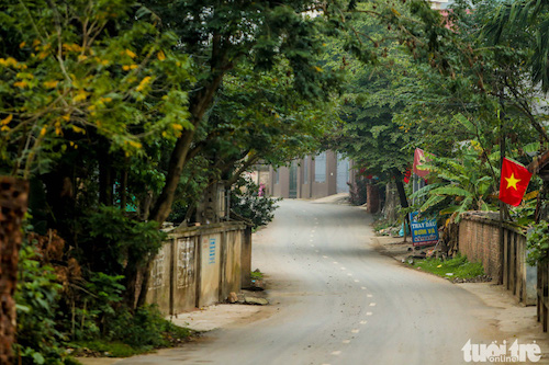 Con đường làng tại thôn Ái Văn (xă Sơn Lôi) vắng vẻ. Nhiều người dân trong thôn đă được đưa đi cách ly sau khi một gia đ́nh trong thôn bị nhiễm corona - Ảnh: NGUYỄN KHÁNH