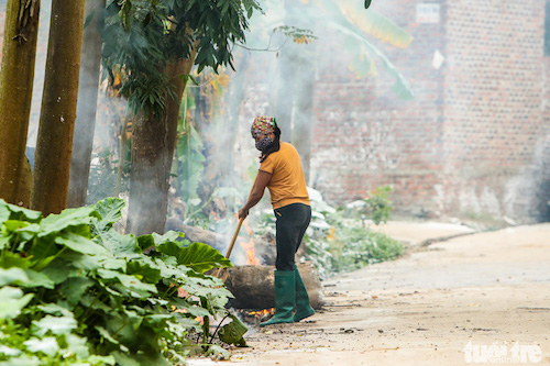 Một người dân đốt rác thải bên cạnh ngôi nhà có người bị nhiễm virus corona - Ảnh: NGUYỄN KHÁNH