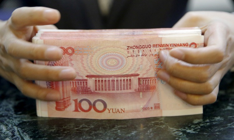 Cọc tiền được kiểm kê tại một chi nhánh ngân hàng ở Bắc Kinh. Ảnh: Reuters.