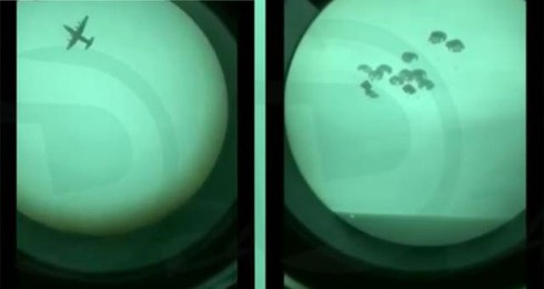 Hình ảnh máy bay vận tải C-130J tiếp tế vũ khí trong đêm được chụp bởi lực lượng phòng không Syria. Nguồn: Sohu.
