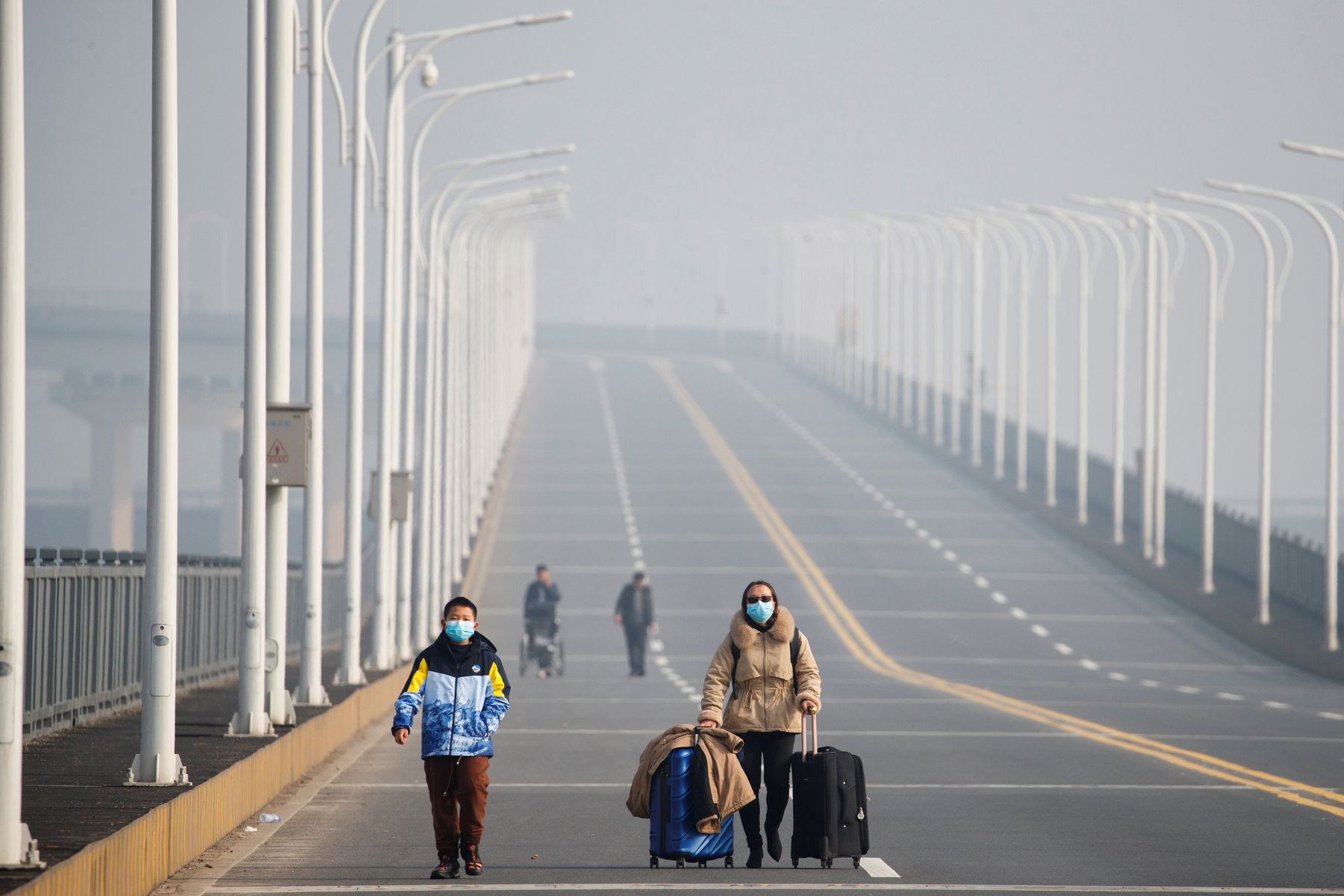 Người dân đi bộ trên cầu bắc qua sông Dương Tử, một trong những con đường rời khỏi Vũ Hán (ảnh: SCMP)
