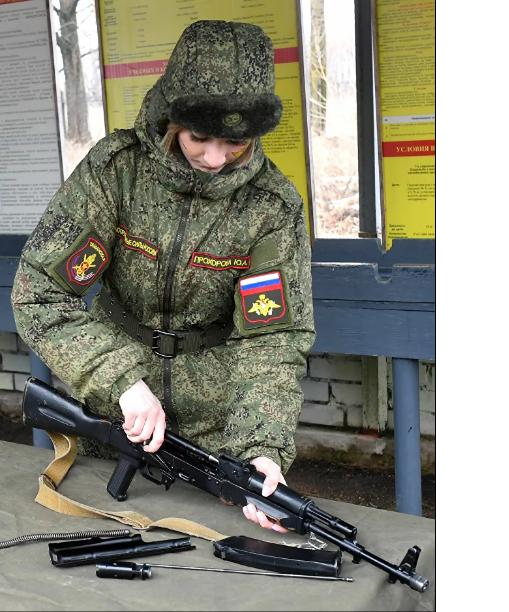 Nữ binh sĩ thể hiện kỹ năng tháo lắp súng. Ảnh: Sputnik