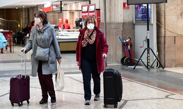 Người dân di chuyển tại ga tàu thành phố Milan hôm 8/3. Ảnh: AFP.