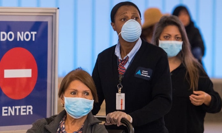 Hành khách đeo khẩu trang pḥng dịch tại sân bay quốc tế Los Angeles ở bang California, Mỹ hôm 5/3. Ảnh: AFP.