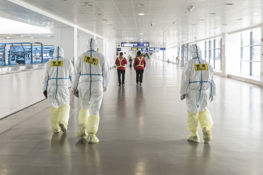 Nhân viên sân bay mặc đồ bảo hộ toàn thân ở Thượng Hải ngày 28/3. Ảnh: Bloomberg.