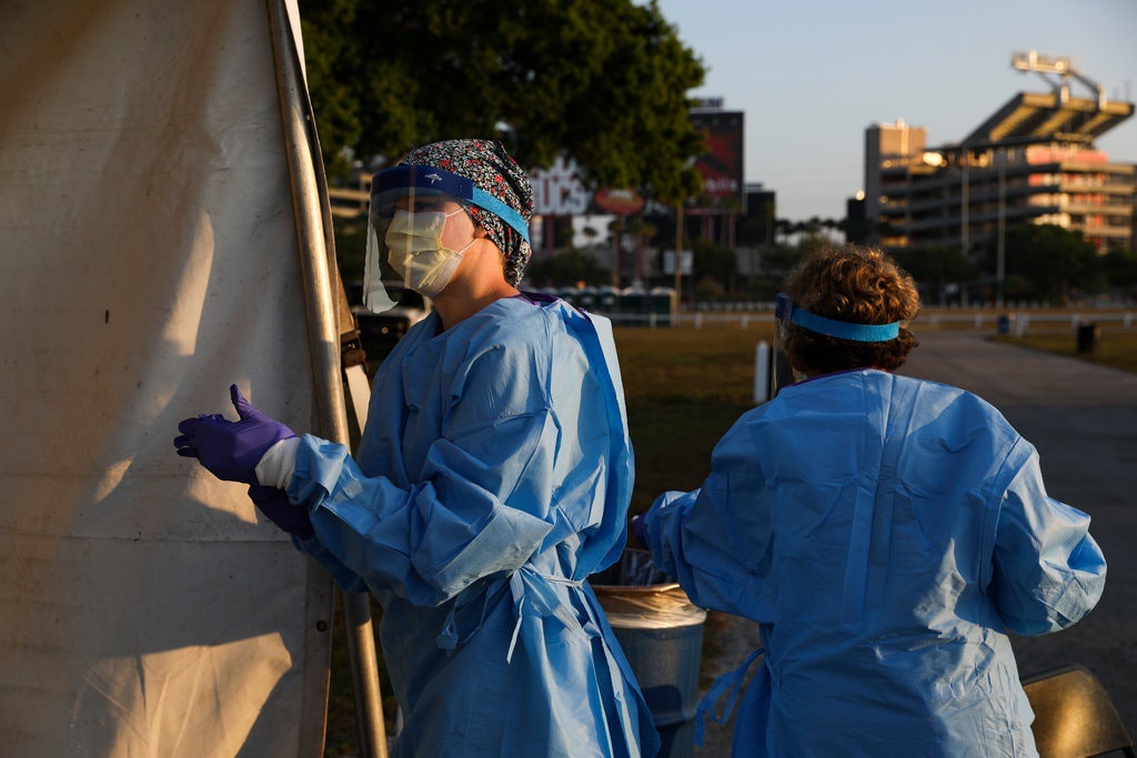 Nhân viên y tế ở một điểm xét nghiệm ở Tampa, bang Florida. Ảnh: New York Times.