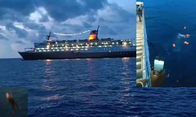 Video hành khách nhảy từ tàu xuống biển (nguồn: SCMP):