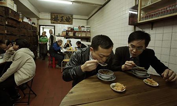 Khách hàng ăn súp rắn tại một nhà hàng ở Hong Kong. Ảnh: Reuters.