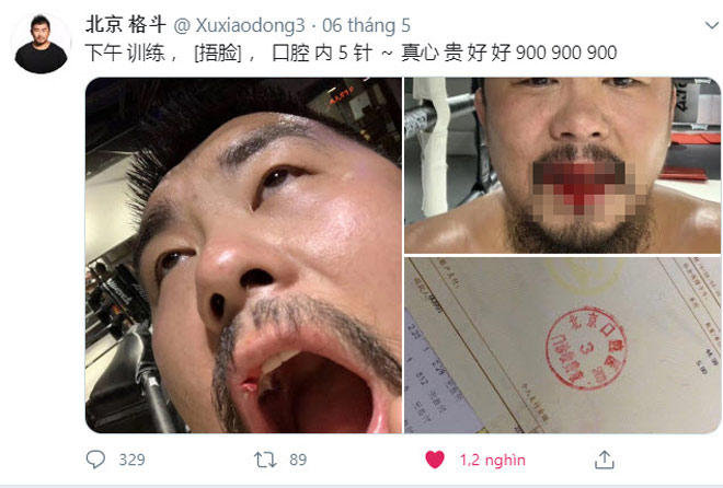 Mới đây, trên trang twitter cá nhân chính Từ Hiểu Đông đăng tải hình ảnh bị thương ở vùng miệng. Theo chia sẻ của tay đấm 41 tuổi, do tháo đồ bảo vệ thi đấu cùng học trò trong một buổi tập nên anh đã bị đánh rách miệng, phải đi khâu 5 mũi với chi phí 900 tệ (gần 3 triệu đồng) cho vết thương này.