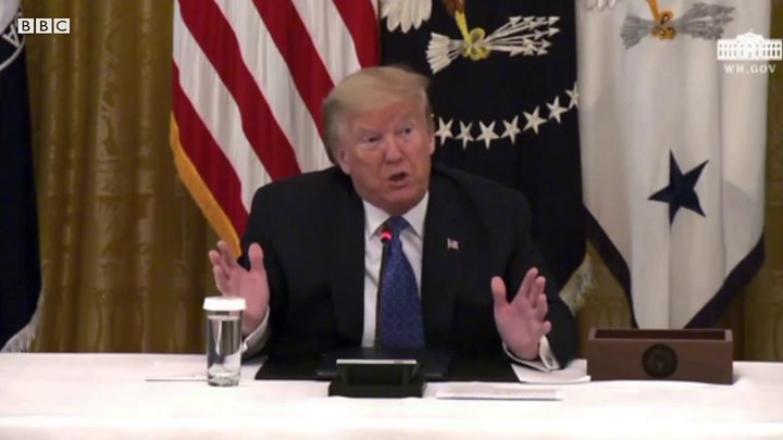 On Monday, Mr Trump was hosting his first cabinet meeting since the US outbreak began.