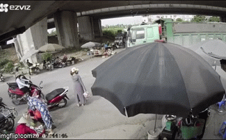 Vụ tai nạn xảy ra vào khoảng 7h44’ sáng ngày hôm nay (1/6) trên đoạn đường có khu chợ phát sinh. Vào thời điểm đó, một người phụ nữ chạy xe máy đã bị xe ben lưu thông hướng ngược chiều đâm trúng. Chiếc xe máy nằm gọn dưới bánh xe ben, còn người phụ nữ may mắn thoát nạn. Khoảnh khắc người phụ nữ đứng dậy, những người xung quanh không khỏi sửng sốt.