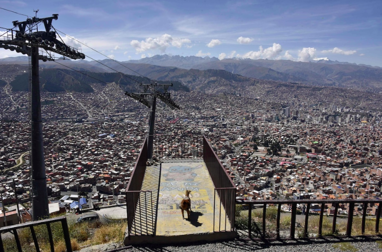 Một chú chó đứng trước khung cảnh bao trùm La Paz nh́n từ El Alto, Bolivia. Ảnh: Getty Images.