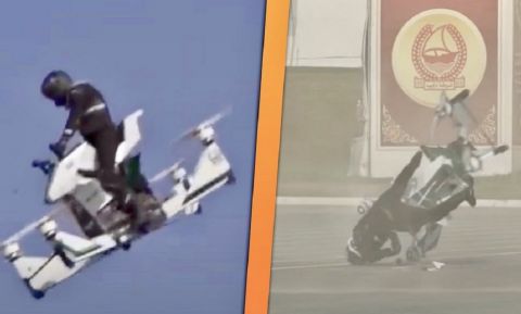 Với mong muốn phát triển các phương tiện bay trên không, Dubai đã thực hiện 1 cuộc thí nghiệm xe bay. Quá trình khá ổn cho đến khi xe bay mất kiểm soát và rơi. Kết quả là chiếc xe bị hư hại nặng và cảnh sát trên xe gặp nguy hiểm.