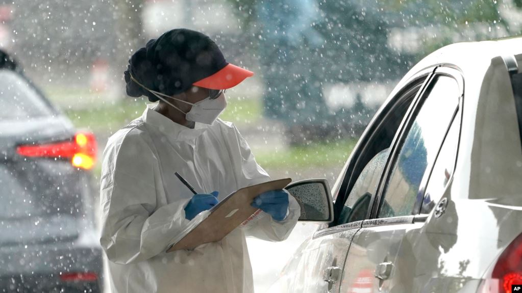 Một nhân viên y tế ghi lại thông tin của bệnh nhân tại Bệnh viện United Memorial, một điểm xét nghiệm COVID-19, ở Houston, bang Texas, ngày 24 tháng 6, 2020.