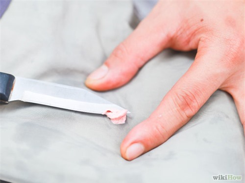 Bước 2: Bạn dùng dao cũ nhẹ nhàng cậy bỏ quần bã kẹo và đem quần áo đi giặt bình thường