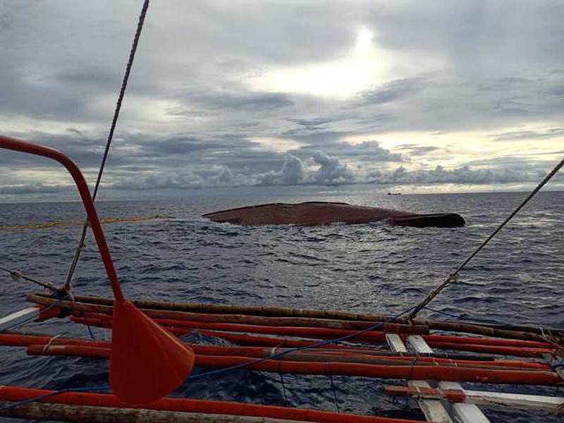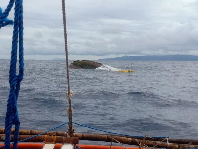 Phần thân tàu cá Liberty Cinco nổi trên biển được lực lượng cứu hộ phát hiện vào ngày 28-6. Ảnh: RAPPLER