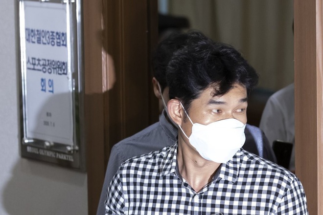 Huấn luyện viên trưởng Kim Gyu-bong của đội tuyển quốc gia thi 3 môn phối hợp, một trong những người bị phạt nặng sau vụ việc. Ảnh: Yonhap.