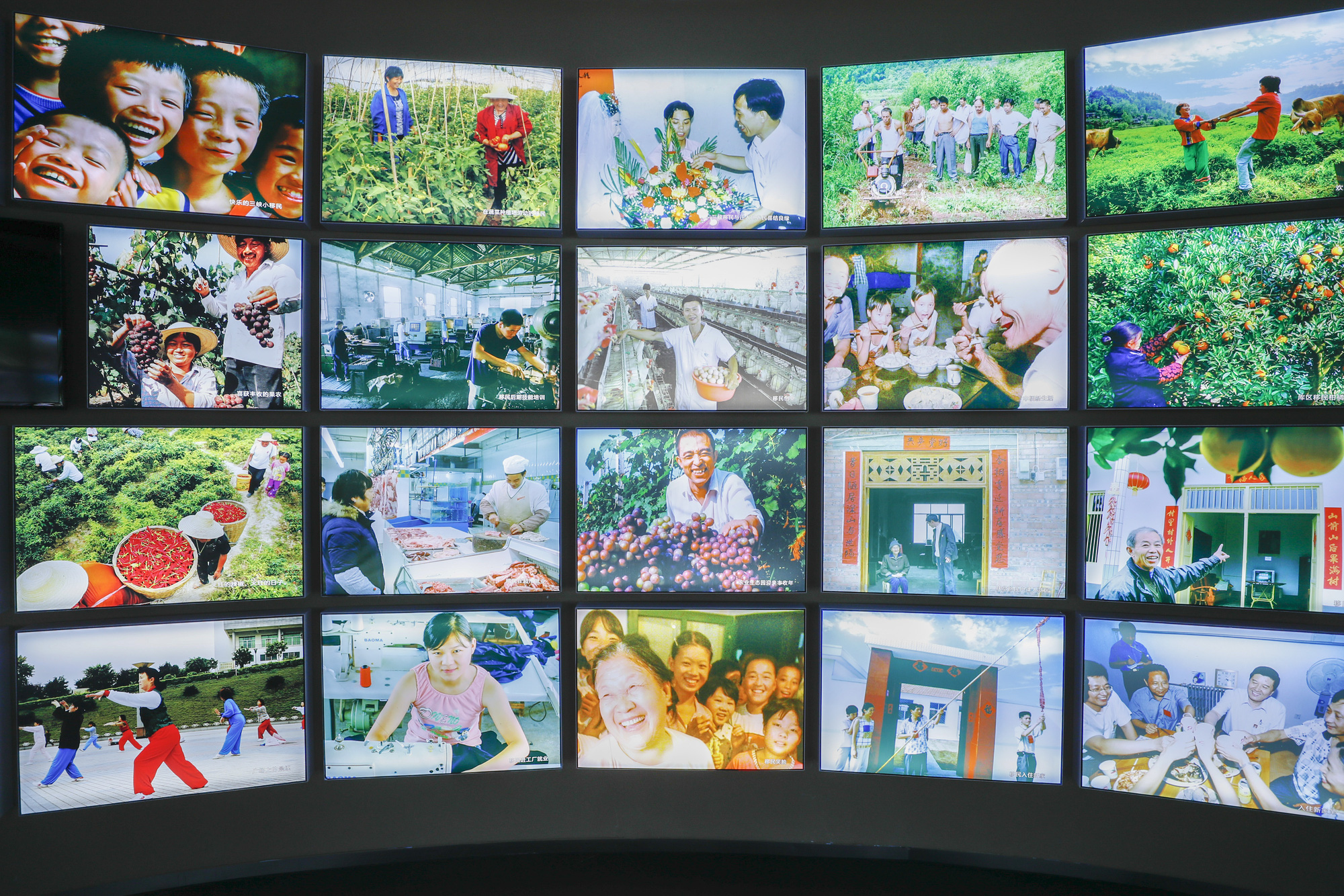 Ảnh chụp vào ngày 22/6/2020 về một bức tường ảnh cho thấy cuộc sống ấm no hạnh phúc của những người tái định cư sau khi di dời khỏi khu vực Hồ chứa Tam Hiệp ở huyện Wanzhou, phía tây nam thành phố Trùng Khánh.