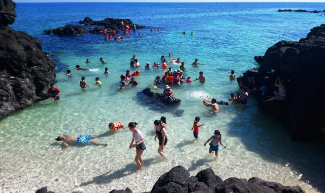 Du khách thích thú bơi lặn giữa làn nước biển trong xanh - ảnh N.N