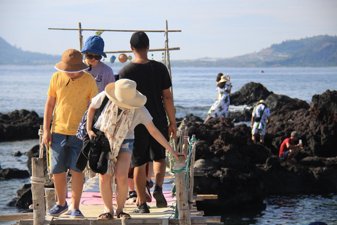 Du khách thăm quan ngắm cảnh ở đảo Bé Lý Sơn bằng xe điện- ảnh N.N