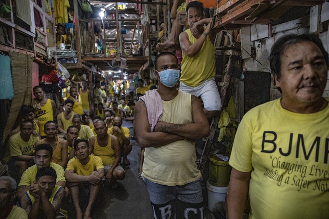 Tù nhân tại nhà tù thành phố Manila, Philippines đeo khẩu trang để chống nhiễm Covid-19. Ảnh: AFP.
