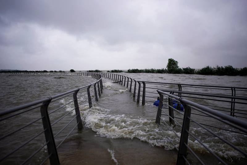 Nước dâng ngập cầu tại hồ Thái Hồ, Trung Quốc (ảnh: Xinhua)