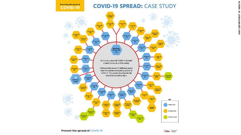 Một người đàn ông nhiễm Covid-19 đến nhà thờ làm lễ vào giữa tháng 6, và sau đó 91 người khác cũng dương tính với Covid-19, trong đó có 53 người trực tiếp đến nhà thờ vào ngày hôm đó, thống đốc bang Ohio cho biết.
