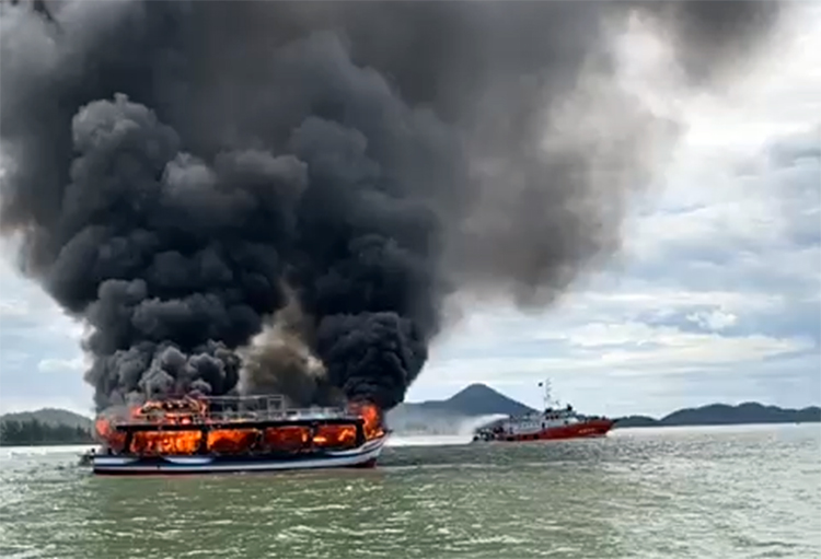 Một tàu khách chở 21 người cùng 4 thuyền viên từ Hà Tiên trên đường đến đảo Hải Tặc ở Kiên Giang thì bất ngờ bốc cháy dữ dội.