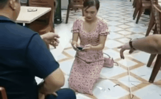 Trước đó, tối 18/8, trên Facebook quán nướng H.T xuất hiện clip được quay trực tiếp tại quán ăn có cảnh một cô gái bị quỳ gối.