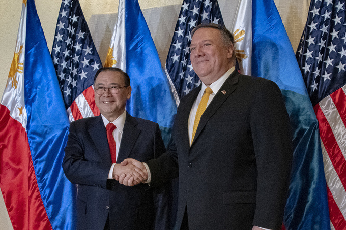 Ngoại trưởng Philippines Teodoro Locsin Jr. và Ngoại trưởng Mỹ Mike Pompeo tại Manila tháng 3/2019. Ảnh: Bộ Ngoại giao Mỹ.