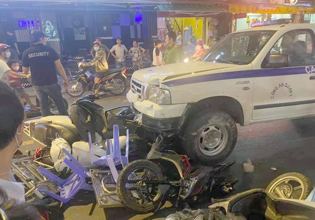 Thông tin ban đầu, vào khoảng 19h30 tối 28/8, ô tô bán tải của Công an phường Phạm Ngũ Lão (quận 1, TPHCM) chạy từ trụ sở trên đường Bùi Viện, hướng về đường Đỗ Quang Đẩu.