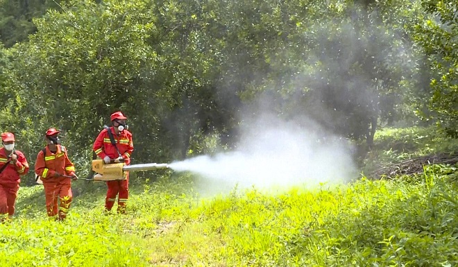 Li Yan, một chủ khách sạn ở huyện Wenwu, nói đoàn thanh tra đã ở lại địa phương kể từ tháng 7. Thanh tra cùng người địa phương liên tục di chuyển bằng 2 xe tải nhỏ, phun thuốc diệt châu chấu.