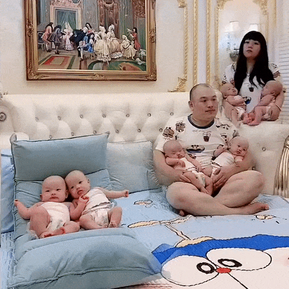 Hình ảnh hài hước gây sốt mạng và nhận được hàng ngàn bình luận: "Trông đôi vợ chồng bình tĩnh vậy thôi chứ trong lòng toàn bão tố không đó"; "Cố tỏ ra là mình ổn nhưng sâu bên trong nước mắt là biển rộng"; "Dù giàu hay nghèo thì cũng chỉ có 24 tiếng/ngày thôi. Để nuôi lớn một đứa trẻ cần rất nhiều công sức, đâu phải chỉ cần bỏ tiền ra là được"; "Con cái là lộc trời cho, có con dĩ nhiên rất vui mừng rồi. Tuy nhiên cũng cần suy nghĩ mình có đủ năng lực về kinh tế, thời gian để sinh nhiều con hay không"; "Ước 1 mà được 6, lãi thế còn gì nữa"; "Nhìn các em bé đáng yêu thật đấy, tuy nhiên nuôi cũng vất vả lắm"...