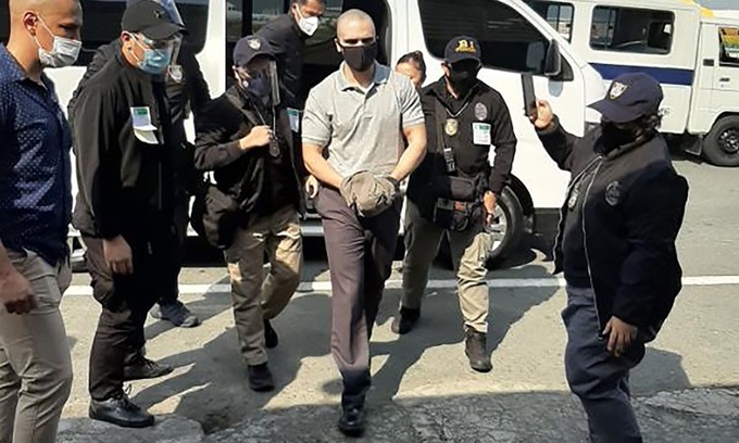 Joseph Scott Pemberton (áo xám) tại sân bay Manila, Philippines hôm nay. Ảnh: AFP.