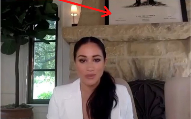 Tuy nhiên, điều gây chú ý hơn cả lại không phải nội dung của cuộc thảo luận hay gương mặt khác lạ của vị Công nương mà lại chính là bức tranh vô tình lọt vào khung hình ngay sau lưng cô. Người hâm mộ tinh mắt nhận ra hình ảnh được đặt trên bệ lò sưởi trong dinh thự của cặp đôi nhà Sussex. Đó là bức tranh in hình con gấu được đóng khung trang trọng với dòng chữ "I Love You, California" (Tôi yêu California). Được biết, bang California ở Mỹ được gọi là "bang gấu" và loài vật này cũng xuất hiện trên quốc kỳ bang.