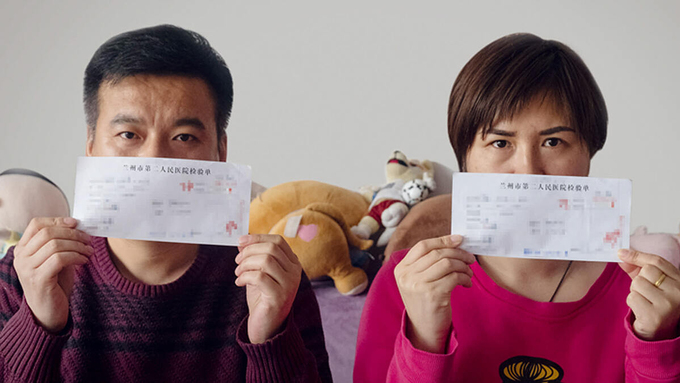 Người dân tỉnh Lan Châu, Trung Quốc cầm kết quả xét nghiệm dương tính vi khuẩn brucella. Ảnh: Caixin
