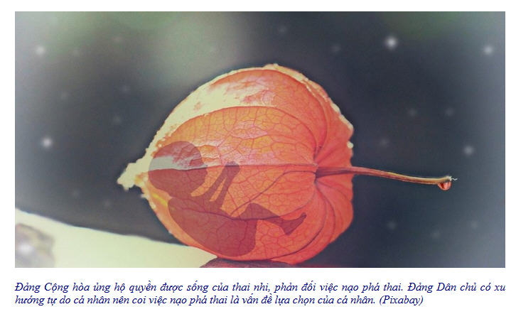 Đảng Cộng hòa ủng hộ quyền được sống của thai nhi, phản đối việc nạo phá thai. Đảng Dân chủ có xu hướng tự do cá nhân nên coi việc nạo phá thai là vấn đề lựa chọn của cá nhân. (Pixabay)
