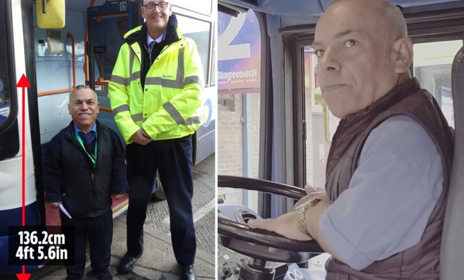 Người đàn ông 55 tuổi được Tổ chức Kỷ lục Guinness Thế giới ghi nhận là tài xế xe buýt lùn nhất thế giới. Ảnh: BBC.
